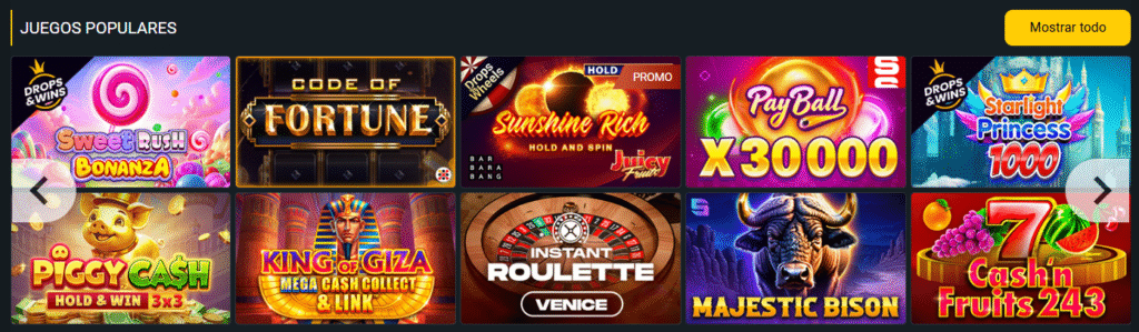 Las máquinas tragamonedas son un gran activo de la empresa que está en constante evolución. En el sitio web se pueden encontrar tragaperras clásicas, video slots modernas, Aviator y otros juegos de gran diversión.